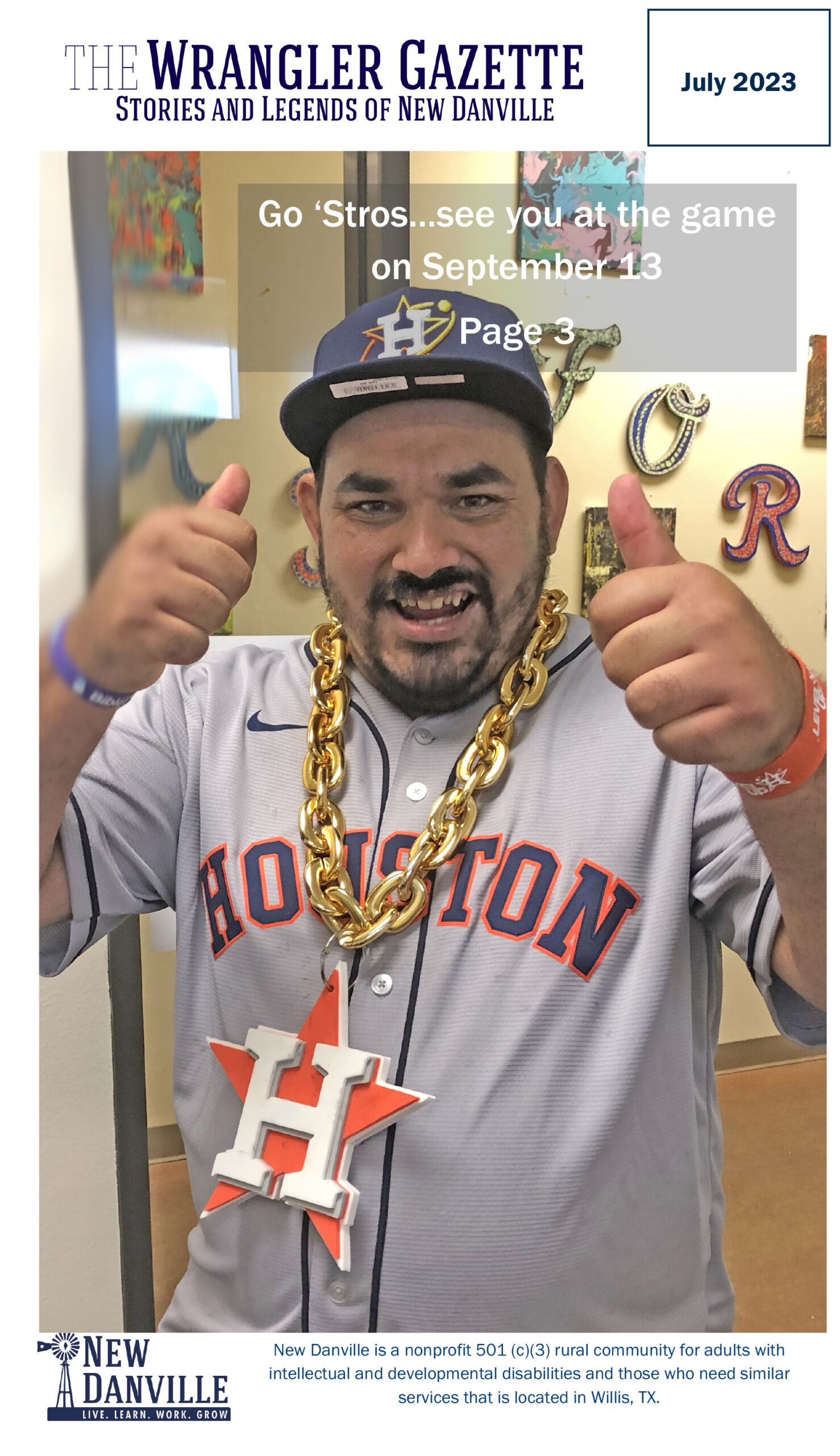 New Danville is a 501(C)(3) nonprofit rural community in Willis, TX for adults with intellectual and developmental disabilities. New Danville provides our clients an opportunity to live enriched and purposeful lives; we proudly call them Wranglers.